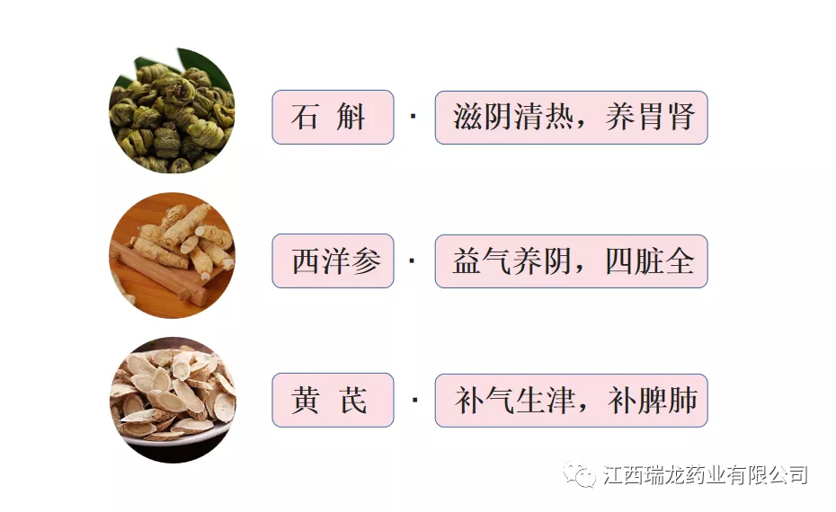 配伍原理:黃芪主要補(bǔ)脾氣,脾主肌肉四肢,可以增強(qiáng)肌糖原的代謝;西洋參補(bǔ)氣養(yǎng)陰,有助于修復(fù)胰島功能,且能改善氣陰兩虧癥狀,緩解疲勞。鐵皮石斛功能養(yǎng)陰清熱潤燥,不僅可以增強(qiáng)胰島素活性,同時能顯著降低血糖水平,使血正常;可促進(jìn)循環(huán)、擴(kuò)張血管、降低血膽固醇和甘油三脂。